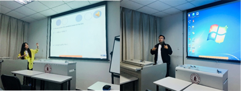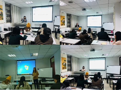 王丹老师首先介绍了本学期公共汉语教学室的基本情况,接着阚丝羽、刘伊辛和吴靖楠老师给大家展示了自己上课的课件,并详细介绍了自己的课程安排、教学步骤。针对公共汉语教学的特殊性,老师们还重点交流了各自进行课堂管理的宝贵经验,就如何增强课堂互动、提高员工开口率、鼓励员工的学习兴趣等进行了热烈的讨论。