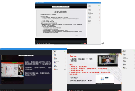 有的老师由于跨年级、跨课程授课,所以采用的不同的在线平台授课,对不同的平台有更多的比较体验:张杰老师介绍了ZOOM和腾讯QQ视频通话的比较体验;冉宪达老师介绍了ZOOM和腾讯会议的比较体验。