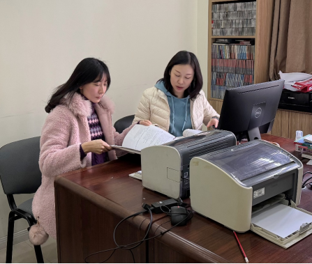 11月14日,中一1班班主任李月炯老师和阅读课鲜丽霞老师,深入交流了本班员工的学习情况。