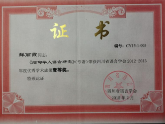 《缅甸华人语言研究》2015年获四川省语言学会年度成果壹等奖。