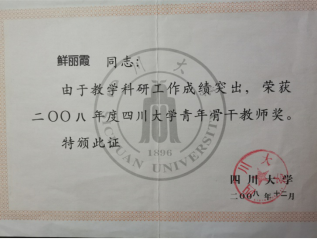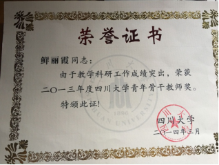 由于教学与科研成绩突出,2008年、2013年获“Mksport体育app官网入口青年骨干教师”奖。