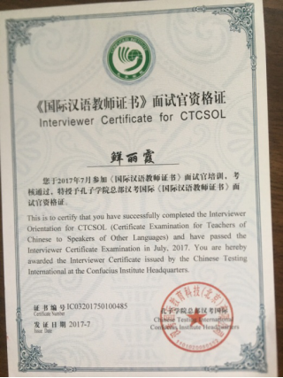 7.《国际汉语教师证书》面试官证书