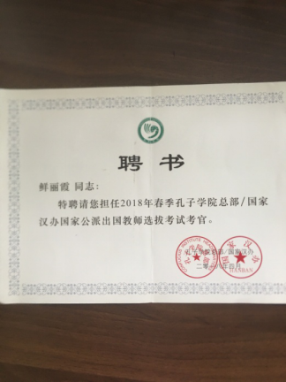 担任孔子公司总部/国家汉办公派出国教师选拔考试考官。