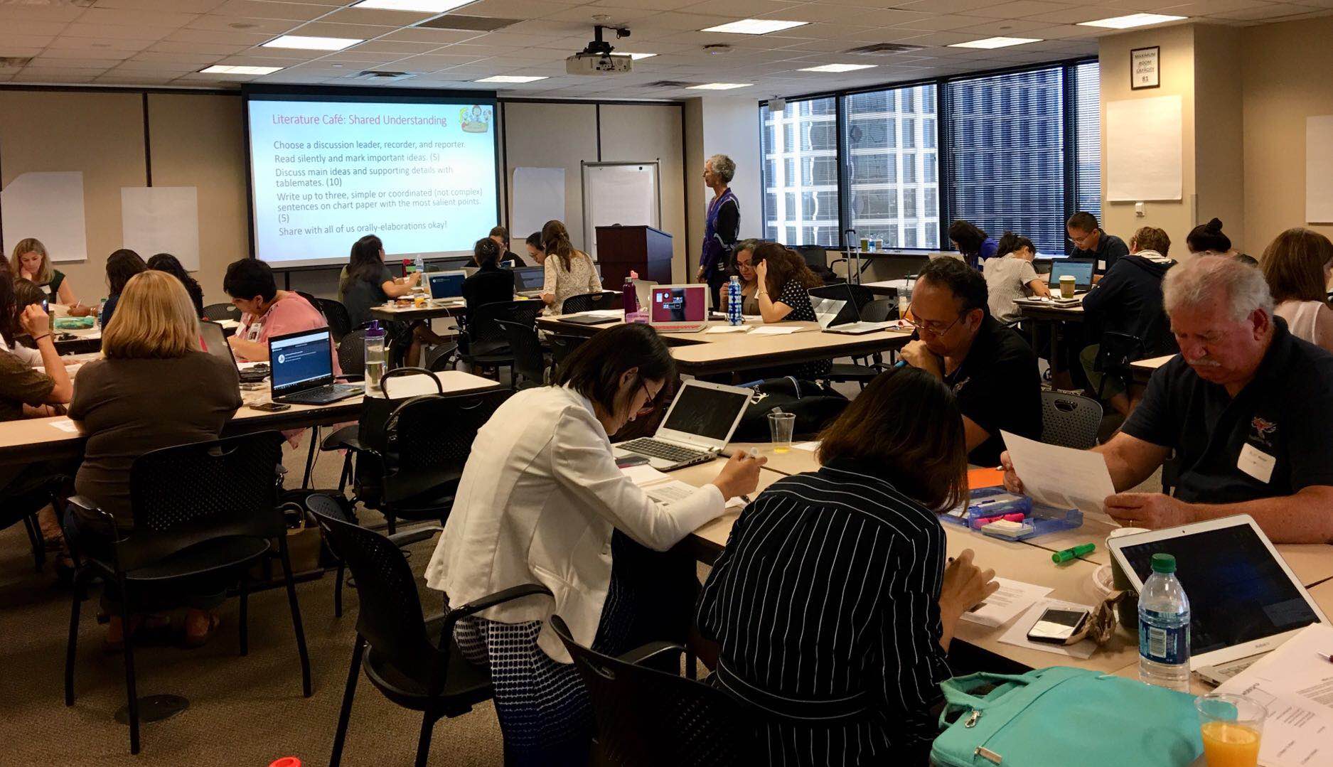 2018年年9月22日亚利利桑那州立大学孔子公司携手亚利利桑那州教育厅在位于凤凰城的亚利利桑那州教育厅总部成功举办首届外语教学管理理人员和骨干团队的培训。本次培训由亚利利桑那州教育厅外语教学事务部主管汤米·沃勒勒(Tammy Waller)女士亲自主持,并有幸邀请到了了美国著名语言学家、教育家黛博拉·罗宾逊(DeborahRobinson)教授作为主讲嘉宾,来自全州的近50名学区负责人、外语教学主管和骨干教师参加了了此次培训。