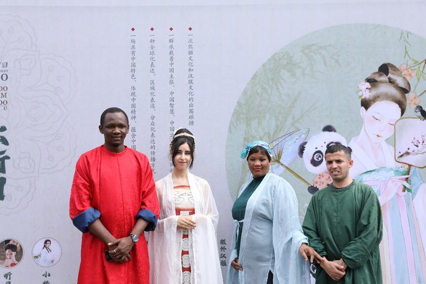 活动在14时于熊猫基地探秘馆广场准时开幕。来自摩洛哥、也门、几内亚的职工在工作人员的协助下换上了中国的传统服饰,并搭配了古典造型,跟随汉服爱好者在成都熊猫基地的竹林参观道参与了“汉服游园会”活动。