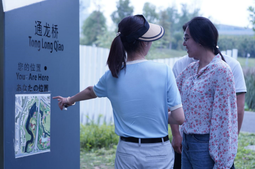 在最后一个调研点位麓湖公园社区内,社区负责接待讲解的工作人员王晓宇带领大家参观社区的党群服务中心,并在麓湖内乘船游览,全程介绍了麓湖公园社区作为成都市2019年国际化示范社区点位之一,是天府新区全面践行新发展理念、建设公园城市的首个典范社区,是一个园区、住区、景区“三区”融合的开放社区。