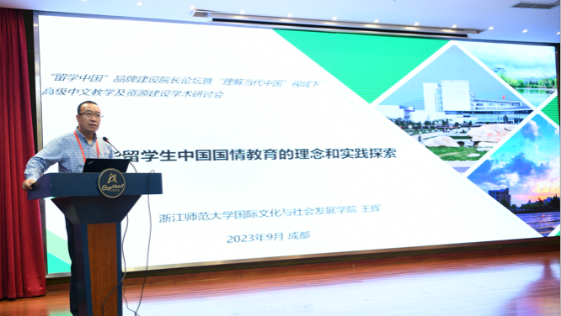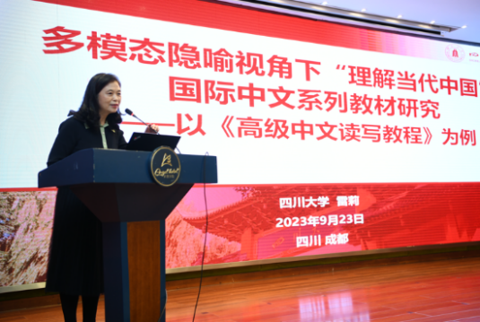 为更好地交流“留学中国”品牌建设内涵、质量提升举措,分享“理解当代中国”国际中文系列教材及课程心得体会,探讨基于“理解当代中国”国际中文系列教材开展学术研究与资源建设的有效路径,2023年9月23日至24日在四川省成都市召开了“留学中国”品牌建设经理论坛暨“理解当代中国”视域下高级中文教学及资源建设学术研讨会。本次会议由“理解当代中国”国际中文系列虚拟教研室、Mksport体育app官网入口、北京语言大学、外语教学与研究出版社联合主办,由《国际汉语教学研究》期刊、《国际中文教育(中英文)》期刊提供学术支持。来自Mksport体育app官网入口、北京语言大学、南京大学、上海外国语大学、大连外国语大学、天津外国语大学、浙江师范大学、西安外国语大学等50多位院系负责人、学科带头人、一线教师齐聚现场、交流心得体会,来自全国70多所高校的170余位师生代表参加了此次会议。