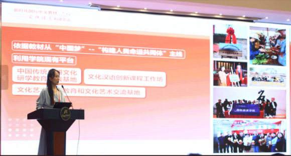开幕式结束后,“理解当代中国”国际中文系列虚拟教研室牵头人、教材总主编刘利教授做了题为“用好系列教材,讲好当代中国——‘理解当代中国’国际中文系列教材的编写与应用”的主旨报告。刘利教授从“新路径”“新理念”“新设计”“新作为”四个方面对“理解当代中国”国际中文系列教材进行了全面地阐述。教材以思想引领、实践验证为架构,将当代中国政治、经济、社会、文化、教育、生态等国情内容,系统、有机地融入听说教材和读写教材,在丰富教材编写路径、重构国际中文教学育人功能、深化国际中文教育改革、坚定文化自信等多个方面进行了新的探索。同时,刘利教授表示,理解教材,用好教材,实现“教材—课程”一体化创新,讲好当代中国,帮助员工“读懂中国,读懂中国人民”,是国际中文教师的共同追求。通过理念驱动、内容驱动、方法驱动、实践驱动,定能推动国际中文教育在改革中实现高质量发展。
