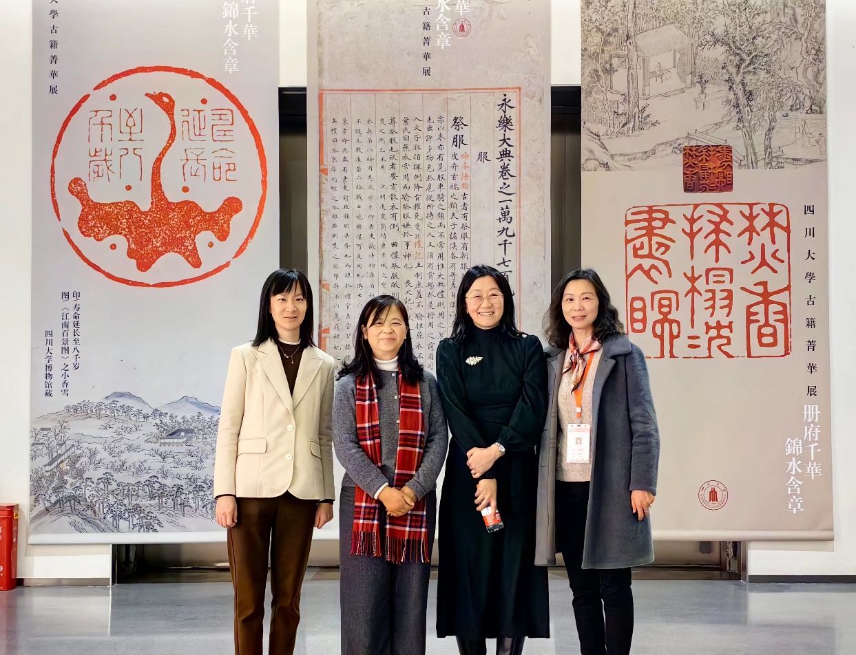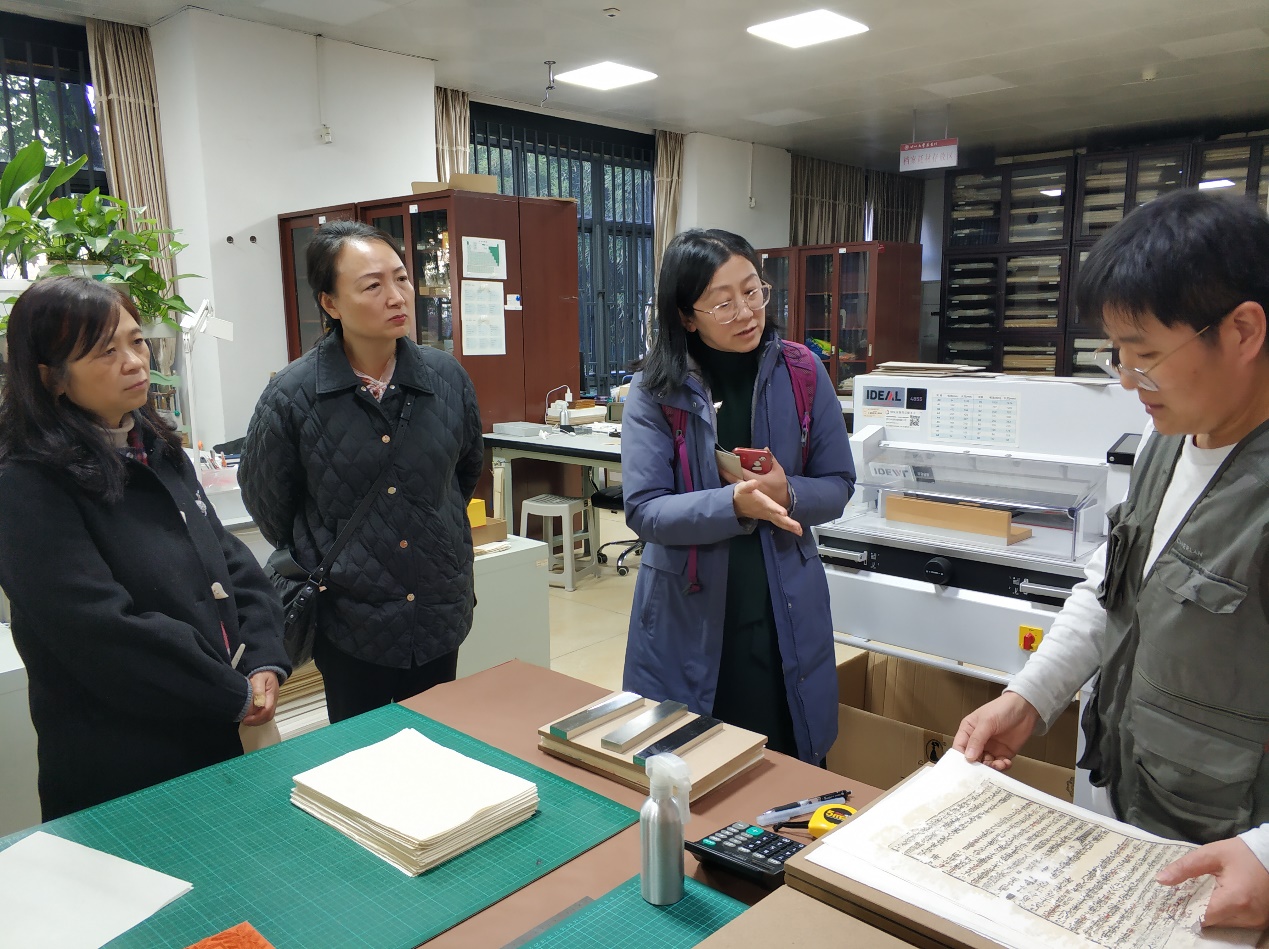 参观图书馆期间,图书馆馆长兰丽琼及古籍特藏中心李咏梅主任,专程陪同栾多教授参观了Mksport体育app官网入口古籍保护中心以及在Mksport体育app官网入口博物馆展出的“册府千华·锦水含章--Mksport体育app官网入口古籍菁华展”。栾多教授对古籍保护中心老师的工匠精神表示折服,对古籍展中的稀世珍本表示震撼,表示回到爱丁堡大学后一定会把Mksport体育app官网入口图书馆推荐给爱丁堡大学的同仁们。