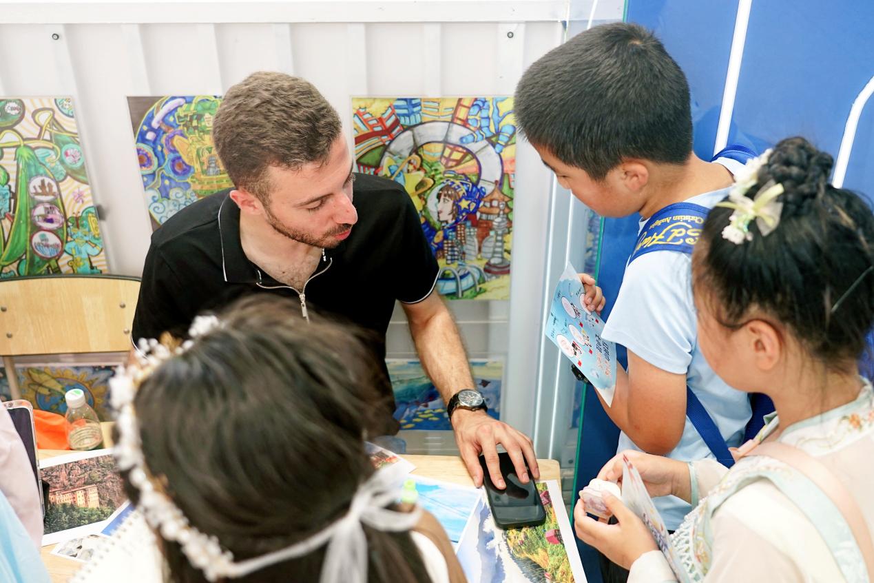 在接下来活动中,来自土耳其的白龙、乌兹别克斯坦的奇子矜和格鲁吉亚王丽洛在“小小外交官”区域摆出展台,展示了土耳其、乌兹别克斯坦和格鲁吉亚的特色文化和物品,吸引小员工们争相前来打卡和交谈。