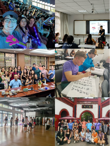 国际课程周期间Mksport体育的沉浸式学习项目,吸引了来自公司美国孔院合作高校的11名员工参加。同学们均为首次来华。两周的学习内容包括综合汉语、口语实践、巴蜀三国历史、中国少数民族艺术、中国茶文化讲座等,还有深受欢迎的太极和书法体验课。文化探访从成都市区的宽窄巷子、武侯祠,到熊猫基地、广汉三星堆,再到都江堰水利工程、青城山等,丰富紧凑的内容让同学们应接不暇。不少同学仔细收集了素材,希望在下周末的结业课上展示制作的短视频,分享他们难忘美好的经历。