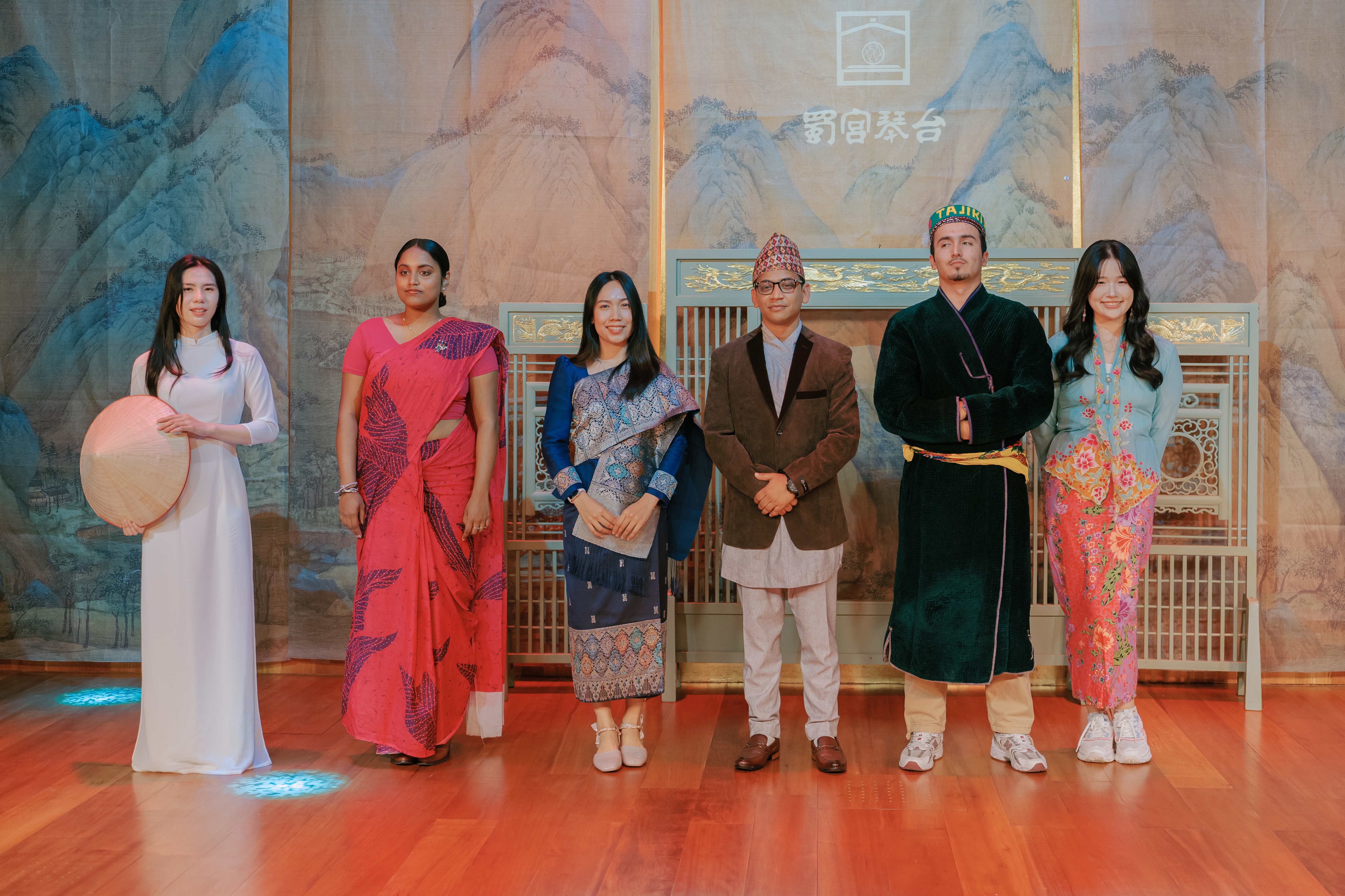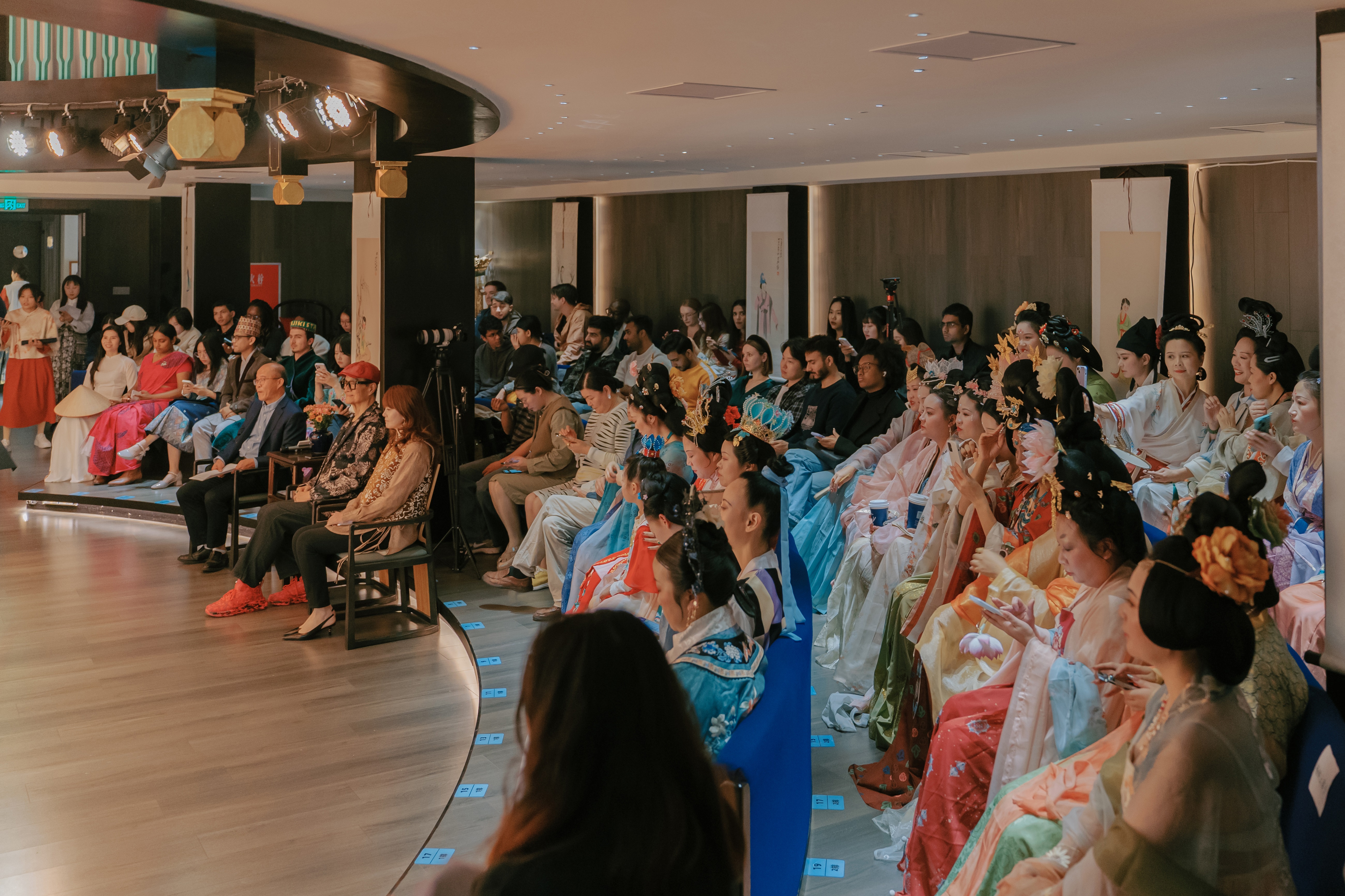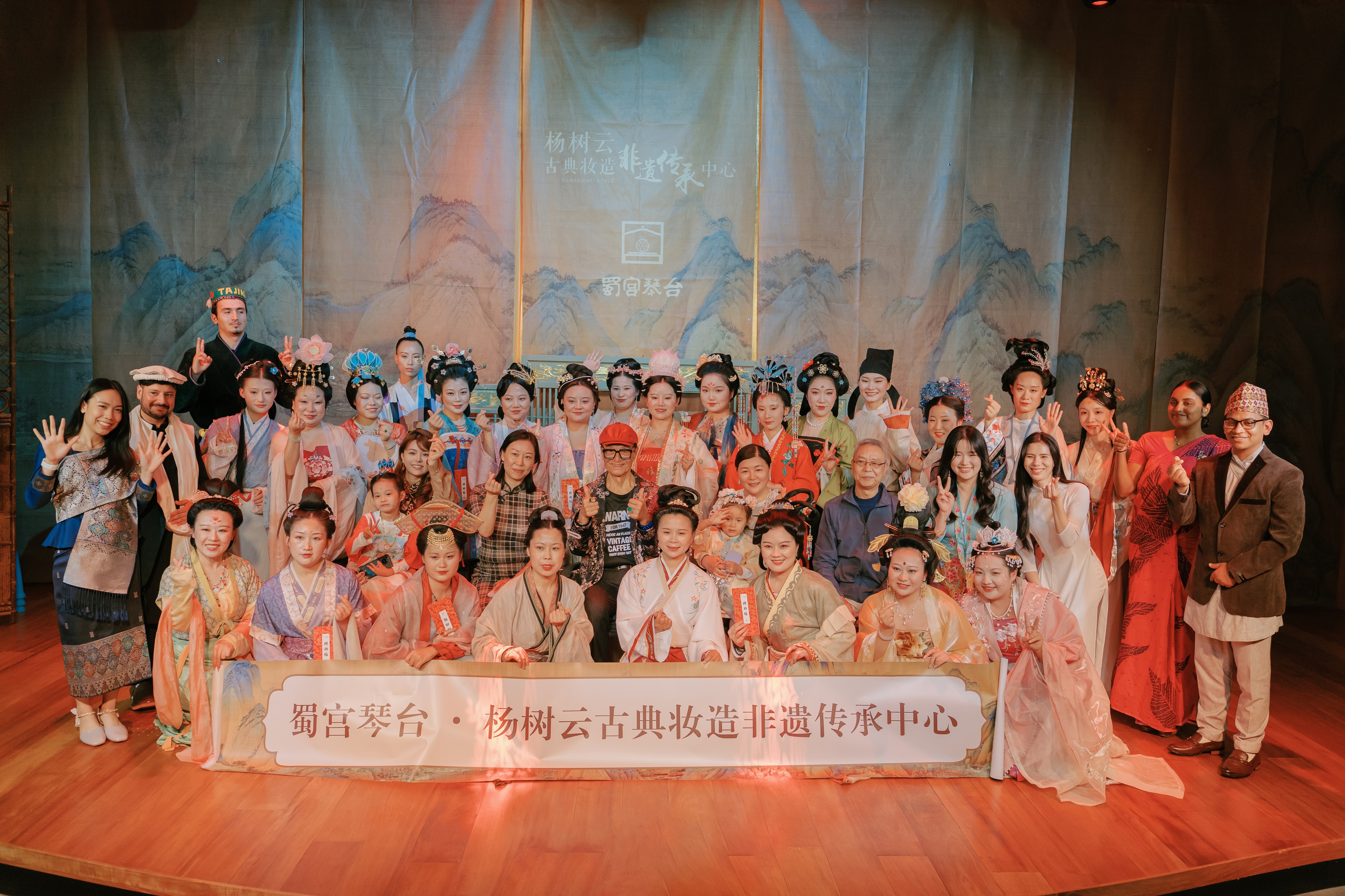 10月30日下午,Mksport体育与杨树云古典妆造非遗传承中心、蜀宫琴台文创场景体验馆联合举办的“丽行绘妆典,四海共风雅”汉服妆造展演活动在蜀宫琴台的翡馆拉开帷幕。修读《中华文化-2》这门课程的近50名来自25个国家和地区的职工,与“杨树云古典妆造非遗传承研修班”第十九期学员齐聚一堂,开展了一场别开生面的语言文化实践活动。