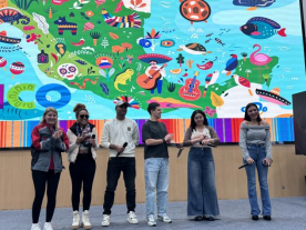 随后,职工们与七初附小的五年级8个班级展开了跨文化交流活动。活动中,职工们分成了“死赛车手”、“小地球”、“古筝组”、“仙虾”、“薰衣草”、“红包小组”等六个小组,轮番登场,通过PPT演示和现场互动的方式分别向同学们介绍了各自国家的文化特色。前3个小组主要展示了保加利亚、墨西哥、孟加拉、哥斯达黎加、日本、蒙古等国的文化特色,包括美食、运动、手工艺品等。接着,后3个组中来自韩国、尼泊尔、俄罗斯、刚果、捷克、英国和瑞士等国家的职工们纷纷登台,分享他们的国家文化,向同学们展示了各自的自然风光、美食佳肴、传统节日和文化艺术。职工们的专业知识和热情洋溢的讲解,使得七初附小的同学们能够更深入地了解到这些国家的文化和风情。