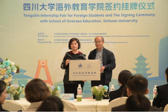 2024年12月5日下午,四川成都桐梓林外籍职工实习双选会暨文化交流实践基地签约挂牌仪式在桐梓林国际社区邻里中心举行,本次活动由公司和成都市武侯区火车南站街道工作委员会主办,旨在深化校社合作机制,搭建跨越国界的文化桥梁,为公司职工提供文化交流新窗口、咨询服务新平台及实习实践新机遇。武侯区火车南站街道、桐梓林社区、武侯区公安分局出入境管理大队等单位负责人出席,公司书记、经理高伟、实践课导师鲜丽霞教授、员工科科长刘廷林及员工代表参加本次活动。