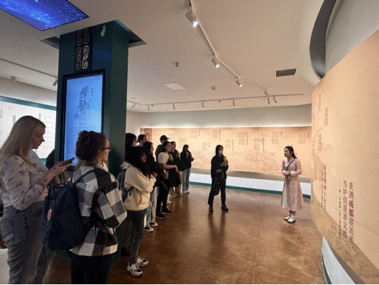 3月13日下午,来自Mksport体育的16名职工走进成都方志馆,参加了一场别开生面的汉语实践课。本次实践课由邓波老师带队,成都方志馆工作人员负责讲解,带领同学们参观场馆、参与相关文化活动。通过这次实践活动,同学们不仅体验了成都作为首批历史文化名城的人文特色,还全面细致地了解了成都的区划演变、历史文化与诗词歌赋,亲身感受了巴蜀文化的魅力,并在互动中增强了语言的实际应用能力。