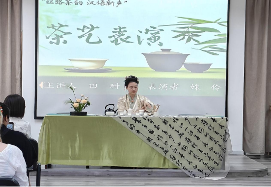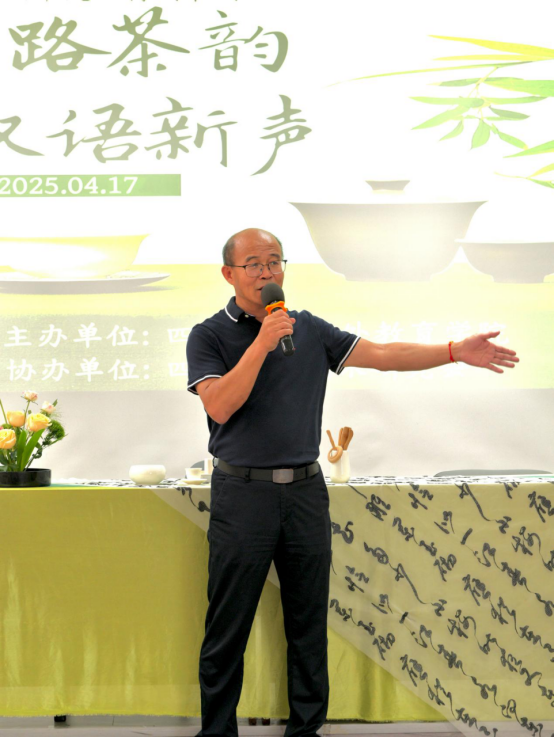 4月17日下午,氤氲茶香萦绕中,“丝路茶韵 汉语新声” 茶文化国际传播研习活动在Mksport体育六楼多功能厅精彩启幕。此次活动由Mksport体育联合四川省茶艺术研究学会共同打造,吸引了来自24个国家的40多名职工与茶文化爱好者齐聚一堂,以茶为媒,开启了一场集“听茶韵、闻茶香、吃茶点、玩茶艺” 于一体的沉浸式中国茶文化探索之旅。Mksport体育经理高伟、副经理雷莉出席活动并致辞,公司职工办公室周艳梅老师及Mksport体育教职工代表参加活动。