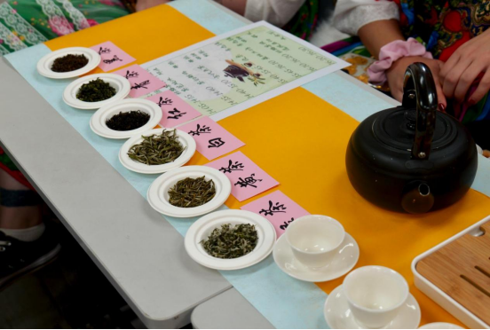 “盲品竞猜” 环节将活动推向小高潮。茶艺师手持六种茶样,引导大家轻嗅茶香,凭借邵燕老师的讲解和自身的感知对茶进行分类。现场气氛热烈,员工们踊跃参与,互动不断。随机抽取同学挑选黄茶并进行茶艺展示后,六位同学分享了品鉴感受,从茶叶的香气、口感,到冲泡技巧的感悟,精彩发言赢得阵阵喝彩。参与者不仅收获了精美礼品,更在趣味互动中初步掌握了基础茶艺知识。