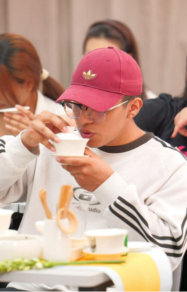 投票环节后,“盖碗工坊(鹤鸣茶馆)” 热闹开场。在茶艺老师的耐心讲解以及李志强老师和职工同学的合作示范下,大家纷纷拿起盖碗,学习“左手托、右手开、三指握” 的冲泡动作,并尝试用四川方言点茶 “老板,一杯素毛峰”。现场还详细讲解了留茶、蓄水、不留茶等茶馆暗号,让参与者沉浸式体验四川市井茶文化的独特魅力。欢笑声与茶香交织,现场氛围达到顶点。