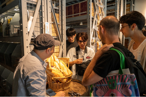 之后,邓老师安排同学们以小组为单位展开自由探索,依照发放的探索地图,走访近十个散布于桐梓林社区的特色点位。从涉外服务商铺到多元国际美食,从便民资源站点到关键交通枢纽,职工们在行走中主动与本地居民、商家及其他国际青年交流对话,在轻松互动中实践语言、探索文化、理解社区。整个过程不仅锻炼了大家的自主探索能力,也让他们在真实的社区场景中,触摸到桐梓林国际生活的脉搏与温度。