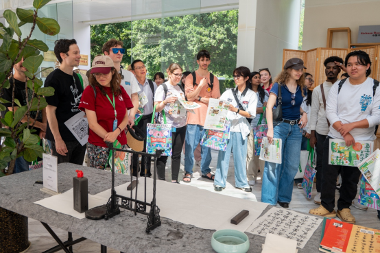 活动伊始,桐梓林社区邻里中心的运营负责人为职工们系统介绍了社区的基本概况,重点讲解了邻里中心依托的五大服务平台以及“社区微博物馆”的建设理念与特色。随后,负责人带领同学们沉浸式体验传统毛笔书法。在墨香浸润中,同学们或凝神观摩,或提笔尝试,真切感受中华传统文化的魅力与韵味。活动现场氛围融洽,不少同学兴致盎然,纷纷用镜头记录下这一难忘的文化体验瞬间。
