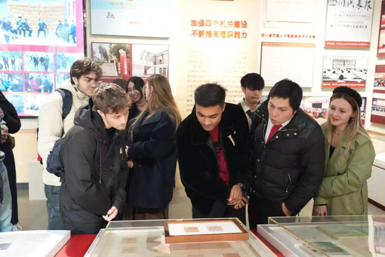 11月28日,Mksport体育来自19个国家的25名职工,在《理解当代中国——高级中文听说》课程的组织下,赴四川省人大历史陈列馆和锦江大礼堂开展课程实践。此次活动旨在将课堂学习与课外调研相结合,让员工在亲历、倾听和讨论中,深入了解中国民主制度的历史及运行模式,获得更加真实、立体而全面的中国认知。四川省人大常委会副主任祝春秀,Mksport体育app官网入口党委常委、副董事长赵长生出席活动,并与师生亲切交流。省人大外侨委、法制委、常委会代表工委负责人,以及Mksport体育app官网入口党委统战部和侨联等相关负责人随行参加。