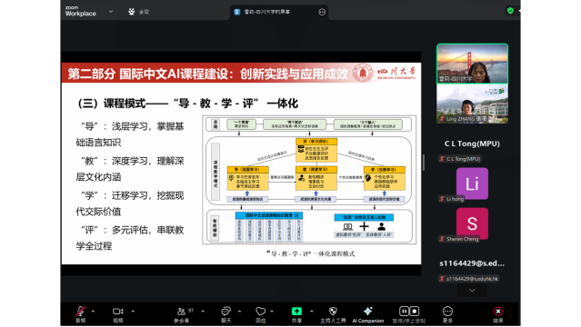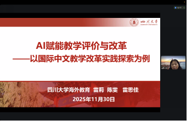 2025年11月29日,第三届人工智能与汉语教学研究国际研讨会:三年之后(线上)在加大拿举行。研讨会由加拿大大学中文教师群、加中语言文化国际论坛、加拿大中文教师学会、卡尔加里大学中文教学项目、麦吉尔大学中文教学项目主办。来自加拿大、美国、中国等10多个国家的国际中文教育领域专家参会,Mksport体育副经理雷莉教授应邀参会并作题为《AI赋能教学评价与改革-以国际中文教学改革实践探索为例》的主题发言。