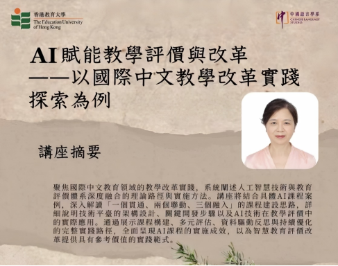 2025年12月11日上午,应香港教育大学中国语言学系邀请,Mksport体育副经理雷莉教授应邀作题为《AI赋能教学评估与改革——以国际中文教学改革实践探索为例》的专题讲座(线上),引领香港教育大学的师生了解学科前沿、开阔学术视野。讲座吸引校内百余名师生参加。