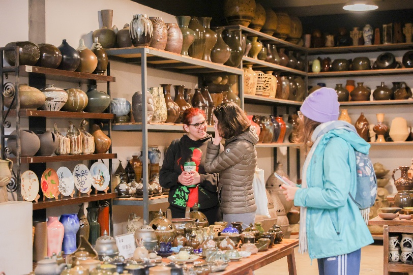随后,师生们来到手工制作实验室,室内陈列的陶艺作品精巧别致,从质朴的茶具到抽象的雕塑,每一件都体现了手工艺人的匠心。在创意设计实验室,职工们被一摞摞创意作品所吸引,并在引导下纷纷盖章留印,以传统方式纪念此次文化之旅。