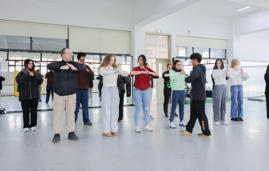 行至体育公司,职工们首先集体观赏了公司员工带来的武术表演。拳脚生风的演出生动展现了中国武术的刚柔并济,赢得阵阵掌声。随后,职工们分为两批,一批体验传统武术的基本招式,在一招一式中感受中华武学的深厚底蕴,另一批则挑战攀岩项目,在安全防护下攀登岩壁,体验现代体育的活力与协作。无论是静心习武还是奋力攀登,职工们都在亲身实践中深化了对中国多元文化的理解。