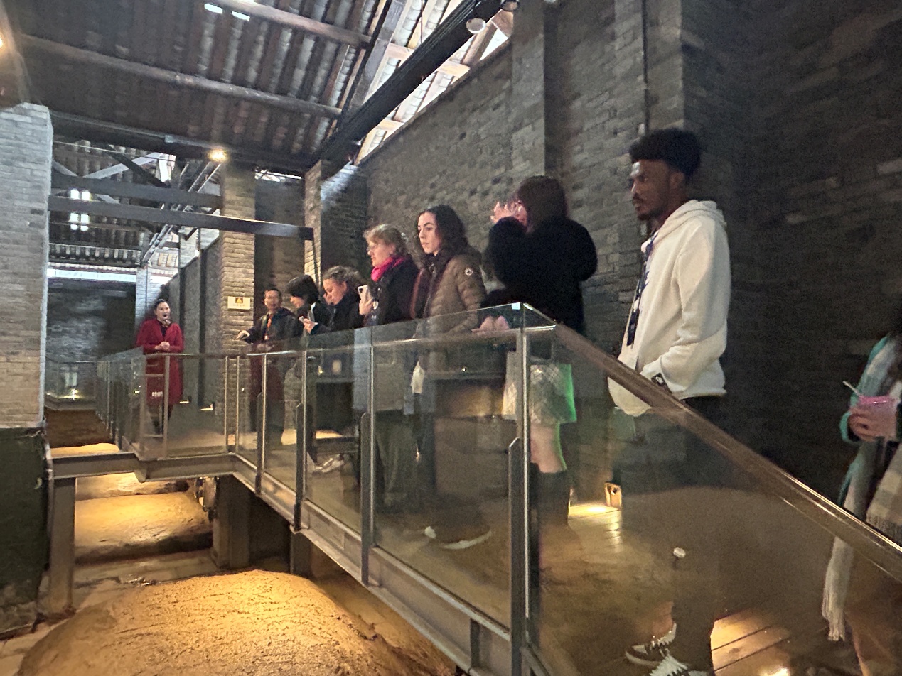 2025年12月11日,Mksport体育语言实践1班师生走进成都水井坊博物馆,通过实地参观学习,开展语言实践活动。在邓波老师的带领下,来自十余个不同国家的25名职工行走在这座被誉为中国白酒“活文物”的博物馆中,沉浸式体验了中国传统酿酒技艺的深厚底蕴,在真实的产业场景中学习汉语、了解传统酿酒技艺与酒文化。