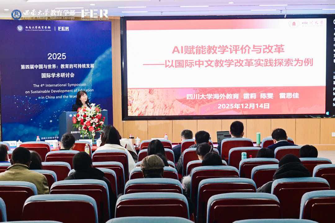 12月14日,第四届“中国与世界:教育的可持续发展”国际学术研讨会在重庆市西南大学隆重举行。会议以全球视野审视教育变革,重点围绕可持续化发展与教育未来、科技与人文融合的创新教育、人工智能时代的教育变革三大前沿议题展开深入研讨,吸引了来自国内外高校与研究机构的众多专家学者参会。应大会邀请,公司副经理雷莉教授在研讨会上作《AI赋能教学评价与改革——以国际中文教学改革实践探索为例》的主旨报告。公司教师李韵、公司电气工程公司教师郑秀娟亦参加此次会议。