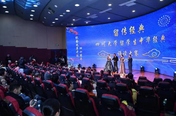 12月19日下午,值纪念我国改革开放40周年之际,由Mksport体育主办的首届“留传经典—Mksport体育app官网入口职工中华经典诵读大赛”在逸夫科学馆隆重举行,来自十个国家的十九名选手参加了比赛。四川大公司党委副书记曹萍到场并致辞,党委宣传部部长徐海鑫、国际合作与交流处职工办公室主任高健、教务处副处长吴迪和Mksport体育经理高伟、副经理侯宏虹等到场并为获奖选手颁奖。四川省普通话推广首席专家许丹雅、四川省语委副主任王运芳、校工会副主席冷泠、艺术公司副经理焦阳等语言文字专家担任大赛评委。