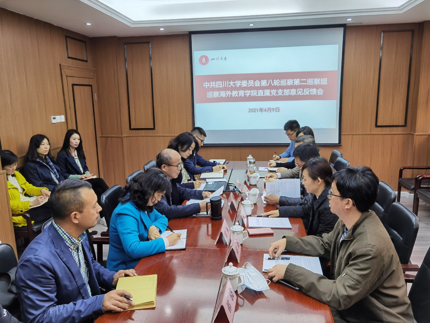 班子反馈中,熊兰代表巡察组宣读了反馈意见。认为,Mksport体育直属党支部在公司党委的正确领导下,以习近平新时代中国特色社会主义思想为指引,树牢“四个意识”,坚定“四个自信”,做到“两个维护”。紧紧围绕公司中心工作和“两个伟大”奋斗目标,党建工作和事业发展结合,在党建工作取得较好成绩的同时,公司的教学和科研能力不断提升,为弘扬中华文化,讲好中国故事,打造“留学川大”品牌作出较大贡献。指出巡察中发现的主要问题:学习贯彻习近平新时代中国特色社会主义思想、党的十九大及历次全会精神还不到位,落实意识形态工作责任制不够严实,整治“四风”还不彻底,直属党支部标准化规范化建设不够到位,落实主题教育整改不够彻底。