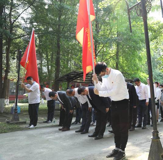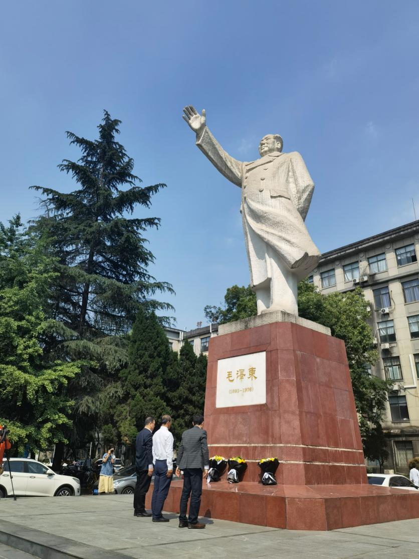 接着,全体党员列队来到毛主席塑像进行祭拜活动,向毛主席塑像敬献鲜花,表达了对一代伟人的无限敬意和缅怀。