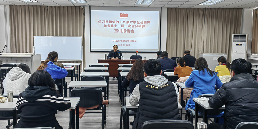 宣讲会特别邀请Mksport体育app官网入口“十九届六中全会精神”宣讲团成员、Mksport体育app官网入口经济研究所所长蒋和胜教授作题为《深入学习贯彻党的十九届六中全会精神 全面落实立德树人根本任务》宣讲报告。蒋和胜教授从党的十九届六中全会召开的背景、意义和议程出发,重点围绕《党的百年奋斗重大成就和历史经验的决议》,通过历史回顾、事件讲述、数据分析、理论思考等方式,深刻阐述分析了党的百年奋斗中四个主要阶段的重大成就和历史经验,重点强调了中国特色社会主义新时代的历史性成就和历史性变革。同时,围绕习近平总书记关于教育“培养什么人、谁来培养人、怎样培养人、为谁培养人”的要求,对高校全面落实立德树人根本任务进行了系统解读、充分阐释。