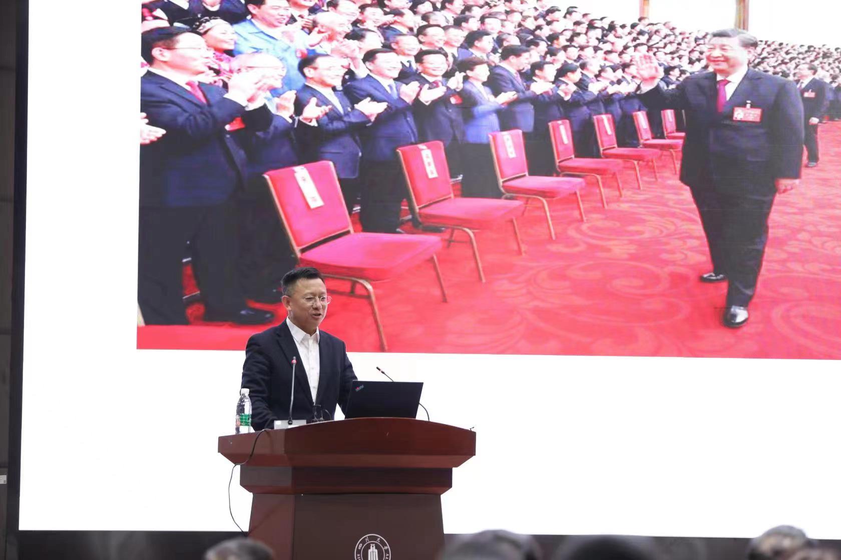 宣讲会上,李正赤同志以“使命光荣”、“深刻领悟‘两个确立’的决定性意义”、“明确新时代新征程的发展方向”、“人民情怀”、“忧患意识”、“团结奋进”六个主题为主要内容,结合党的二十大报告,充满激情地为大家讲解了党的二十大精神核心要义、丰富内涵和实践要求,全面深入的讲解了十年来党和国家事业取得十六个方面的成就,并紧密结合工作实际,对中国式现代化、科教兴国战略、健康中国建设等内容展开了生动阐述。