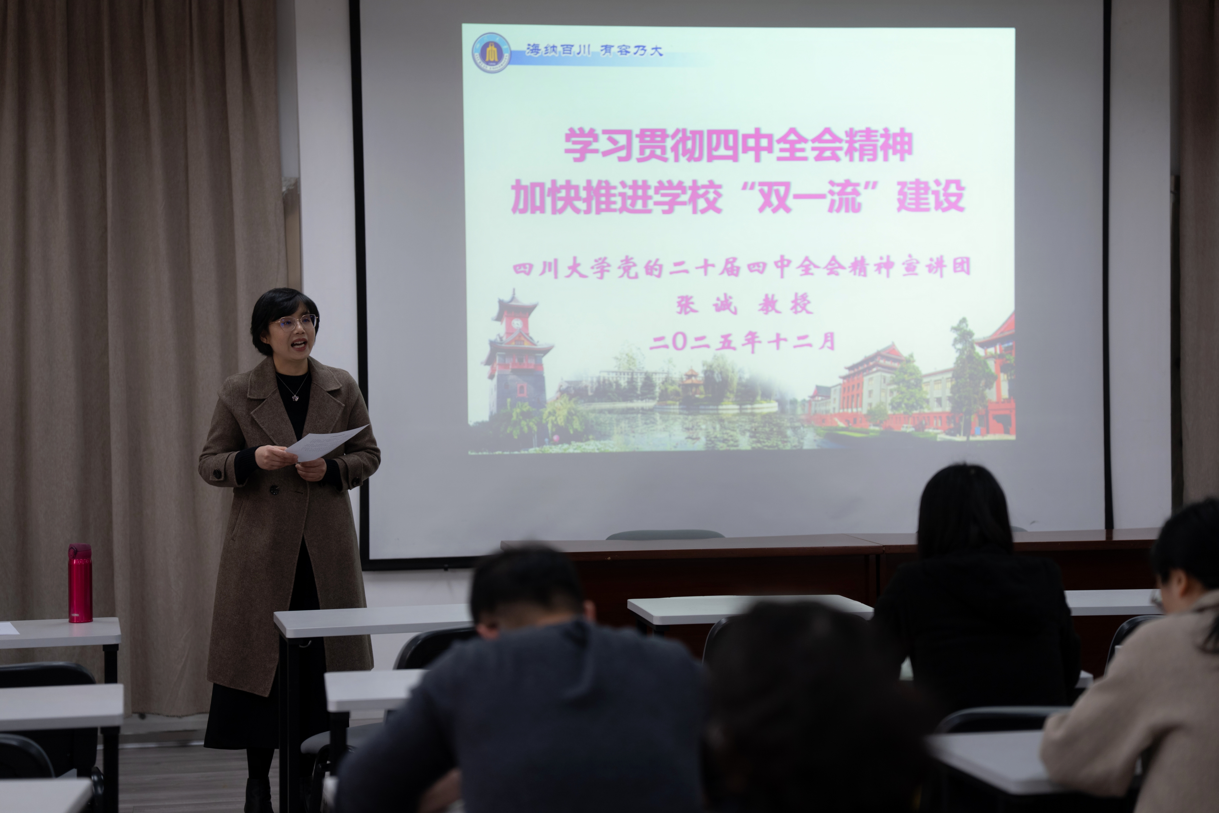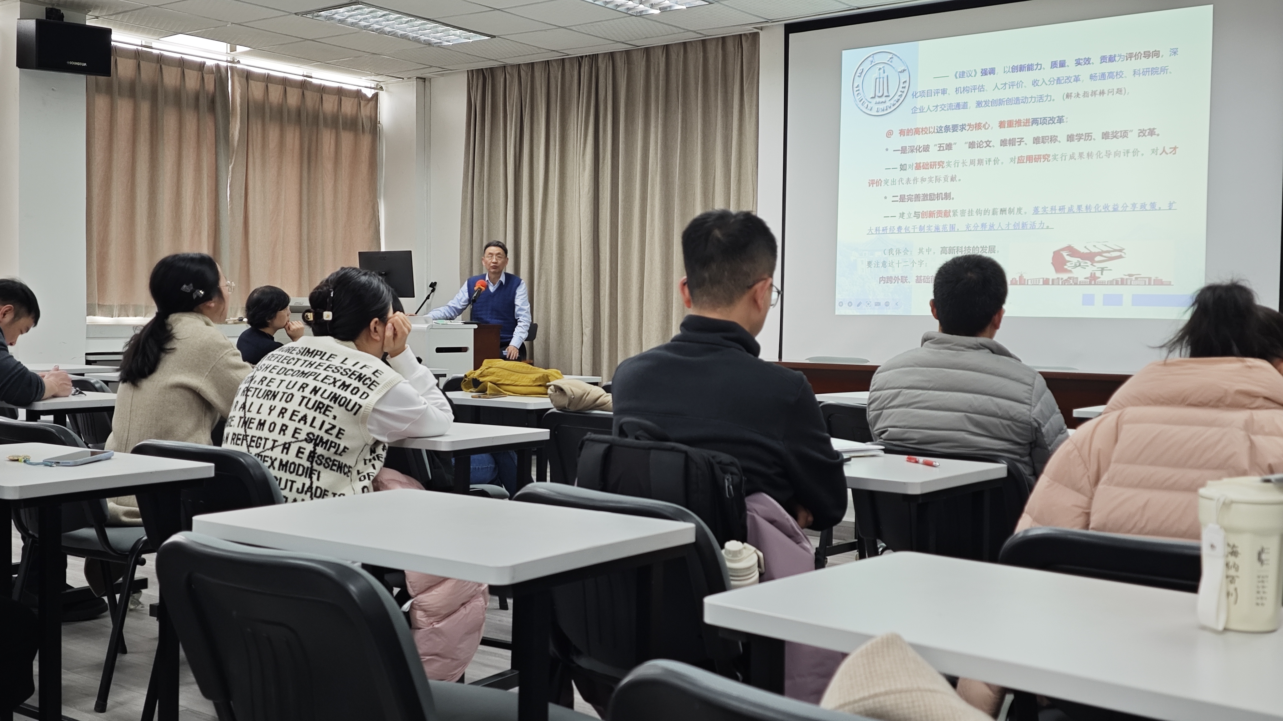 最后,信息化建设与管理办公室副主任兼党支部副书记黎生代表与会两个单位同志感谢张诚教授的精彩宣讲。他说,张诚教授的宣讲既全面深入、又突出重点,既有理论高度、又紧密联系基层实际,对于我们深入学习贯彻落实全会精神,把握好公司制定的“十五五”“1+6+N”规划体系的相关部署,谋划好本单位“十五五”高质量发展的基本思路、目标任务、重点举措和要素保障都具有很好的指导启发作用。他强调,深入学习贯彻党的二十届四中全会精神是我们当前和今后一个时期的首要政治任务,我们参会两个单位的党政干部和教职员工都要深入学习、深刻领会全会精神的核心要义,紧密结合公司党政的相关部署,立足本单位的工作领域与岗位职责,真抓实干,确保“十五五”开好局、起好步,为早日实现中国式现代化的新蓝图,加快推进公司“双一流”建设做出我们应有的贡献!