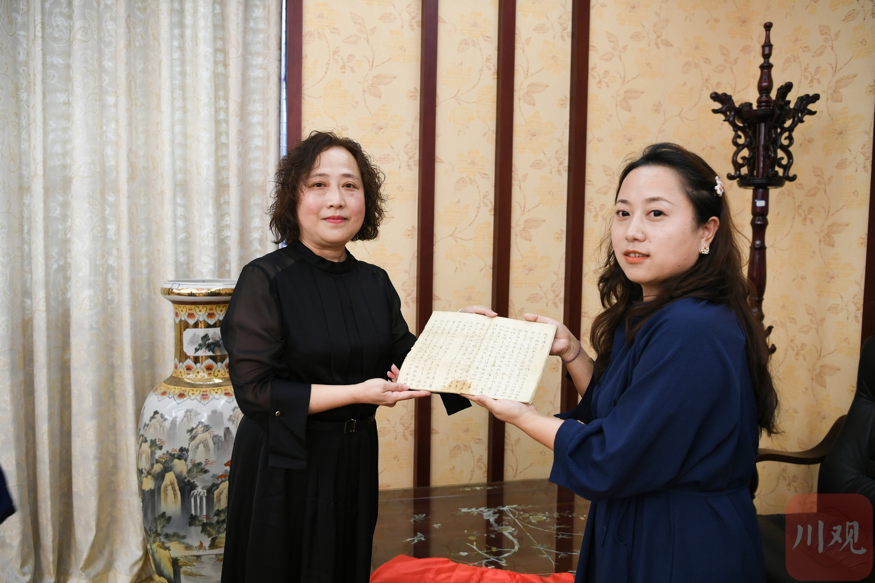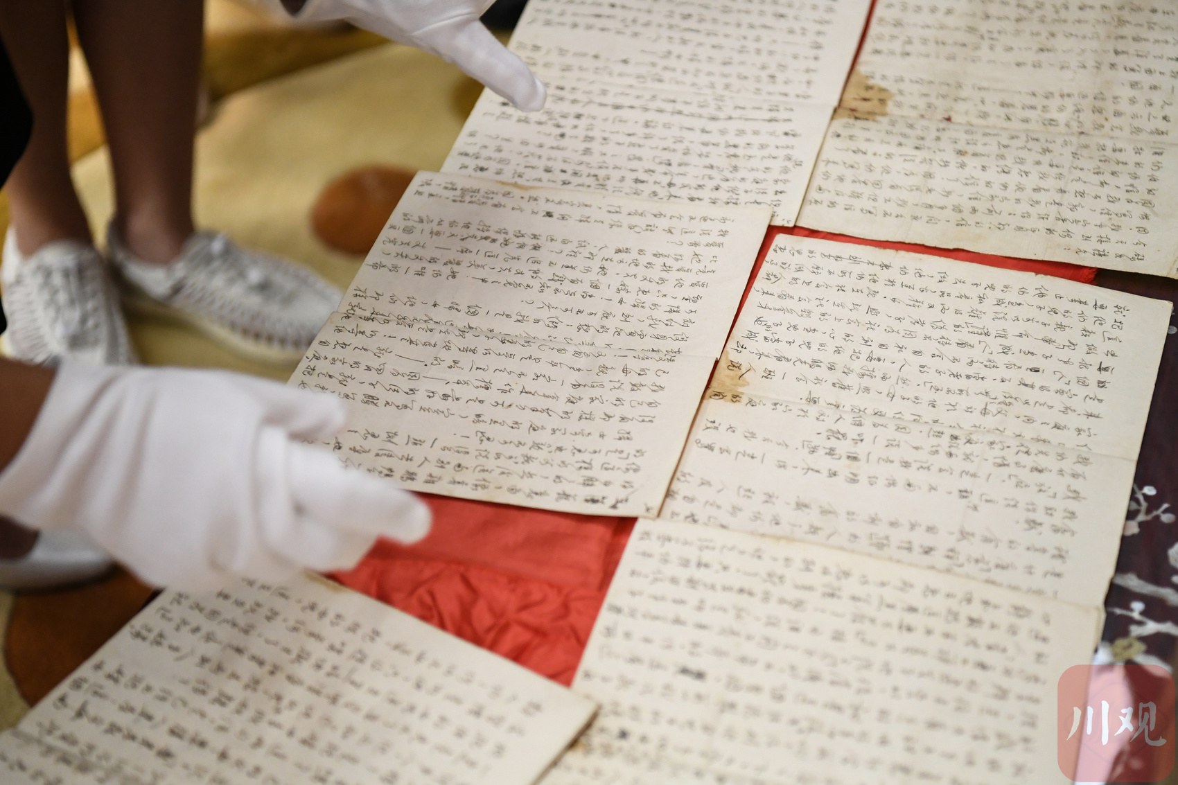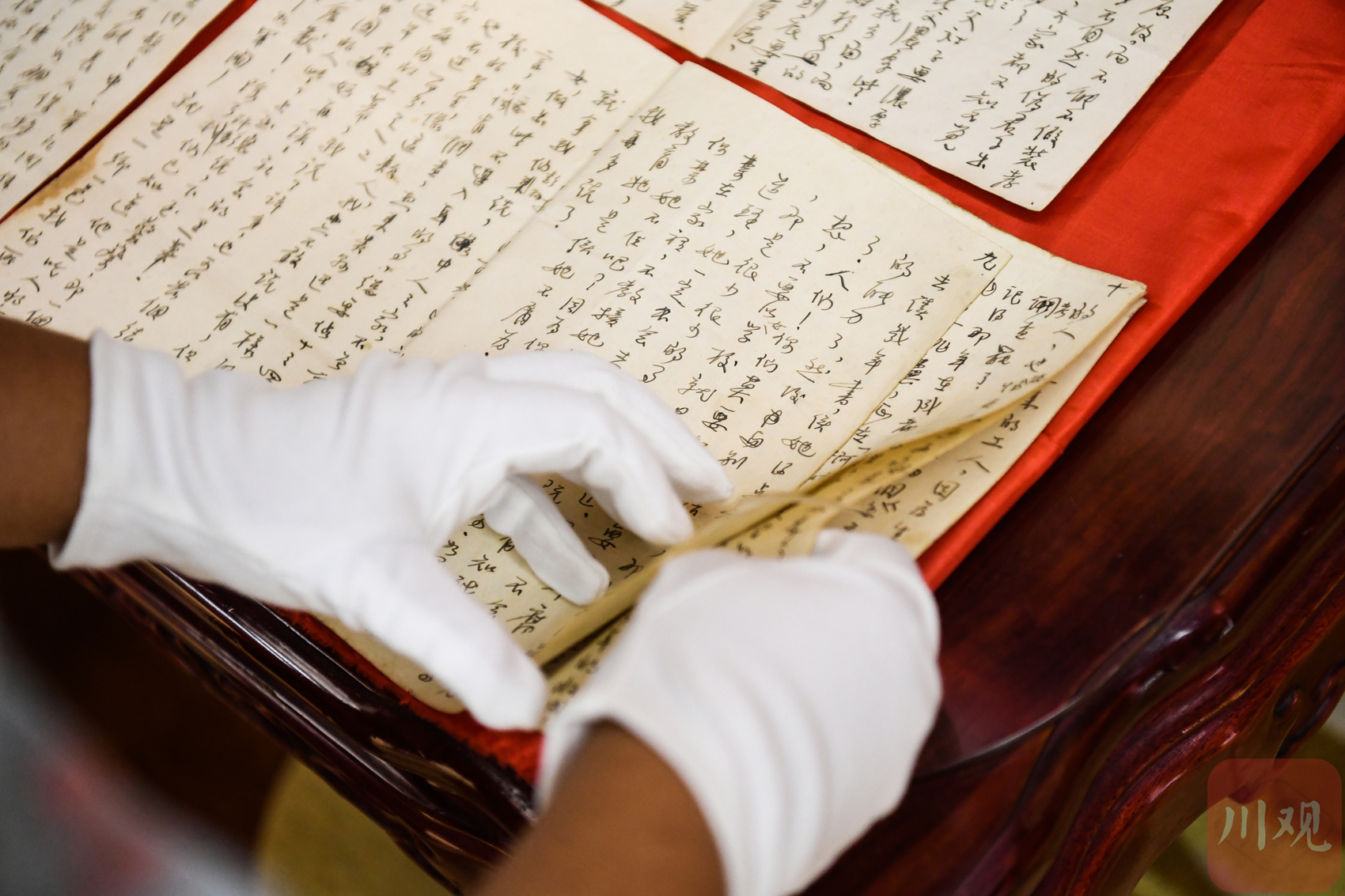 杨达烈士孙女杨丹和后辈余莹展示杨达烈士的家书