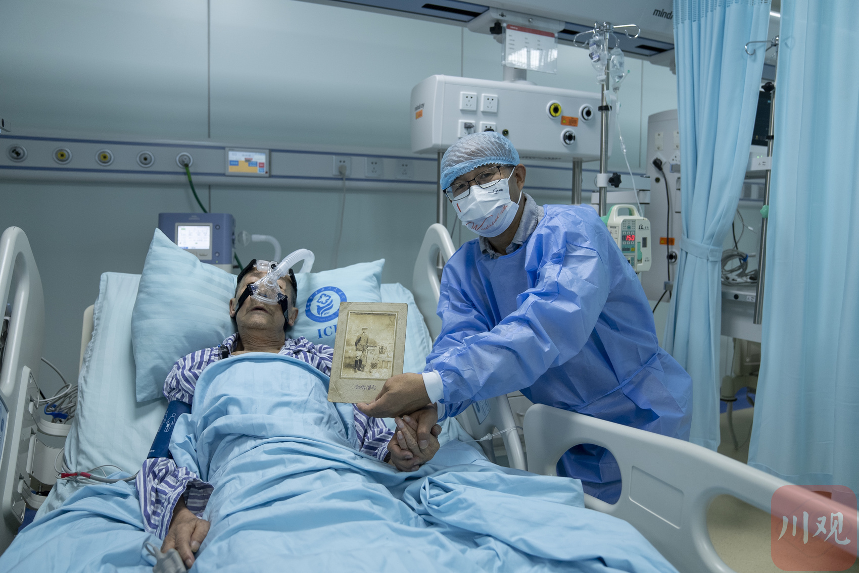 病床上85岁的杨世成老人将照片递给Mksport体育经理高伟,请他转交给八一南昌起义纪念馆